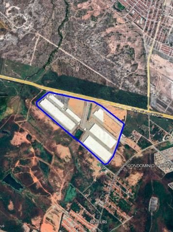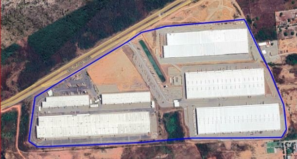 Galpão com pé-direito diferenciado de até 12 m, piso nivelado a laser com resistência de até 6 t/m², amplo estacionamento, edificações de apoio e portaria com segurança 24 horas e administração própria.